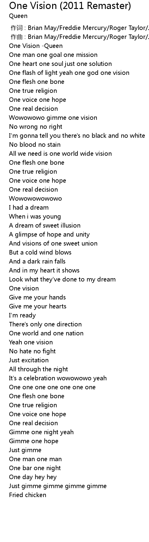 | [00:01.500] | One Vision Queen |