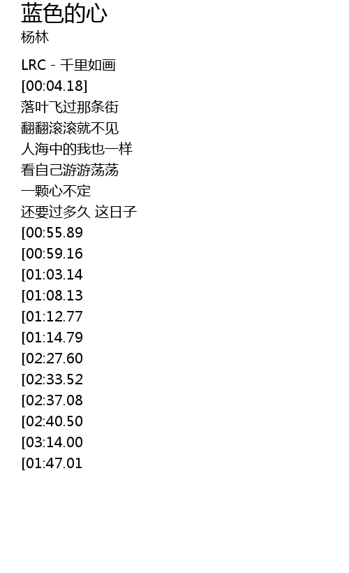 | [03:07.55][02:40.50][01:34.11] | 蓝色的心 诉说我的一些忧郁 |