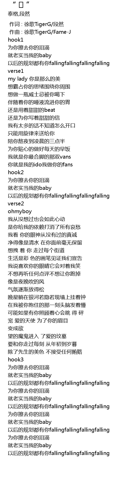 | [00:00.000] | 作词 : 徐歌TigerG/段然 |