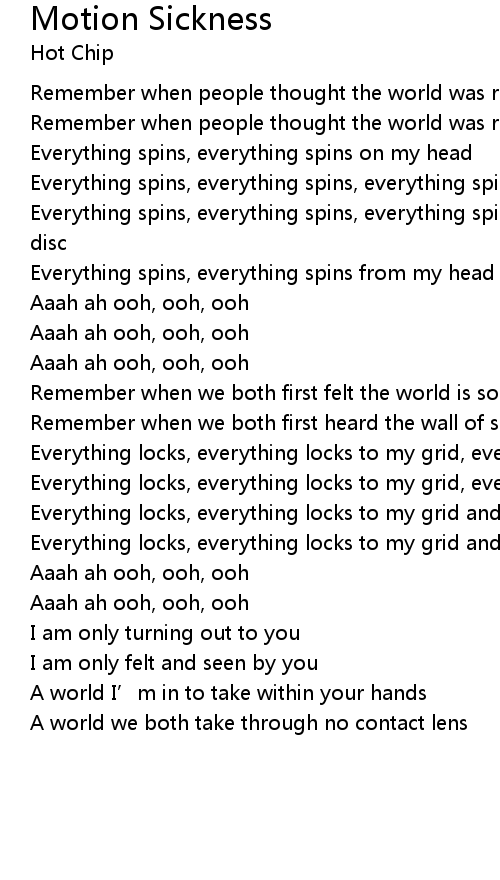 | Everything spins, everything spins from my head til my motion sickness | |