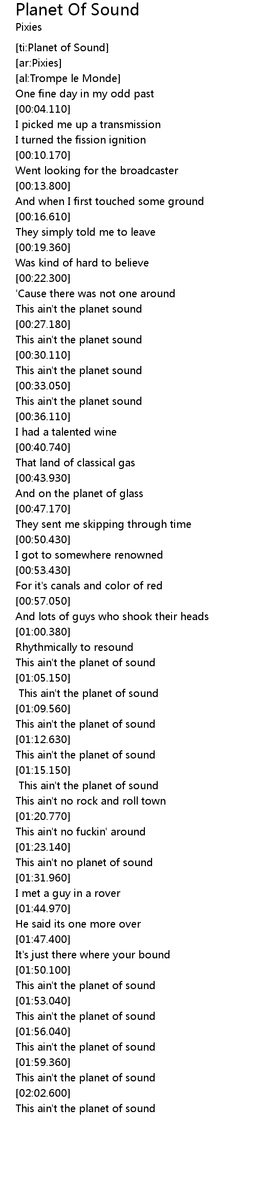 Planet Of Sound Lyrics