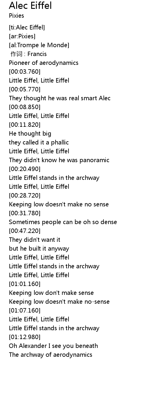 | [00:04.270] | Little Eiffel, Little Eiffel |