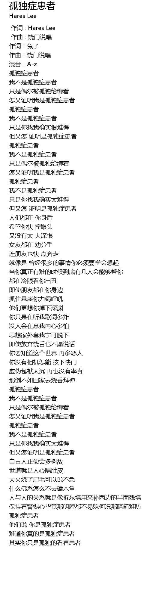 | [00:43.626] | 怎又证明我是孤独症患者 |