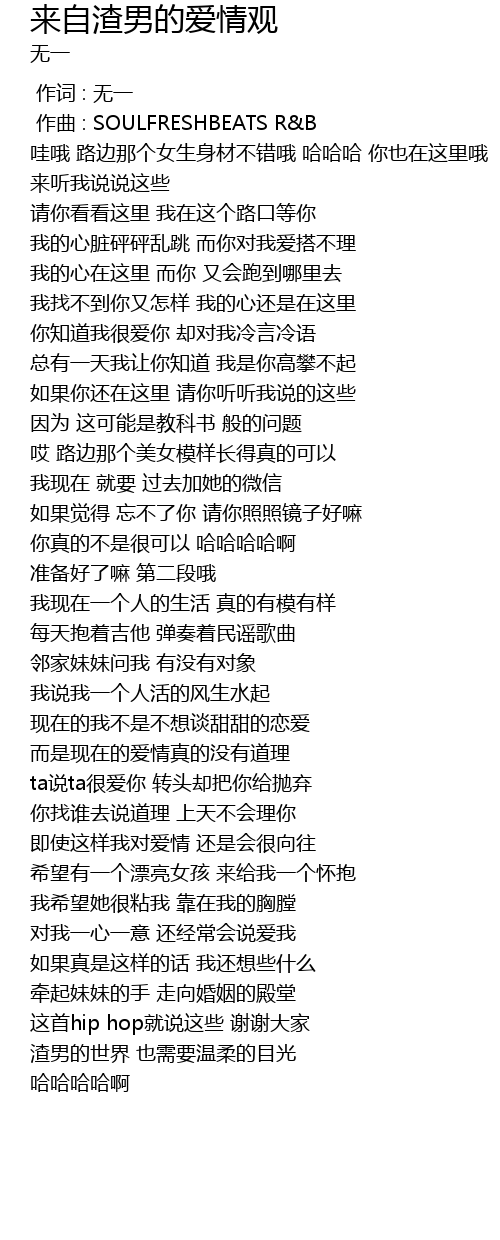 | [00:01.000] | zuo qu : SOULFRESHBEATS R B |