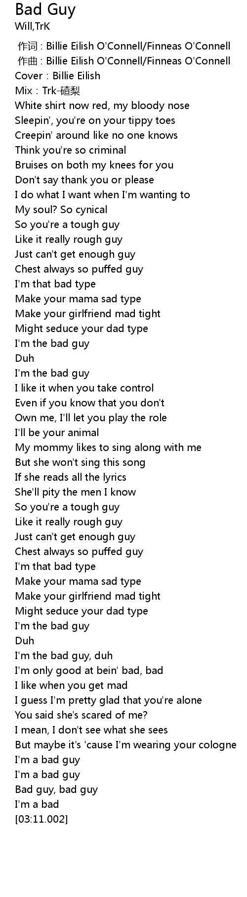 | [00:00.188] | 作曲 : Billie Eilish O'Connell/Finneas O'Connell |