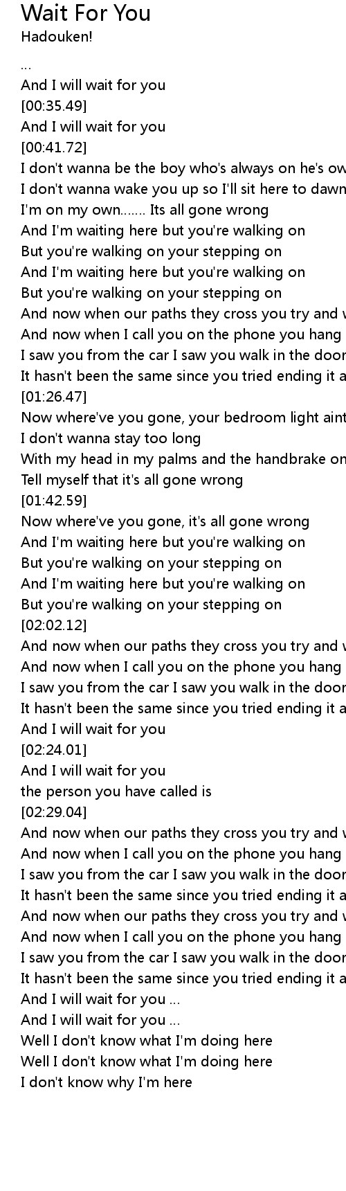 | [01:50.43] | And I' m waiting here but you' re walking on |