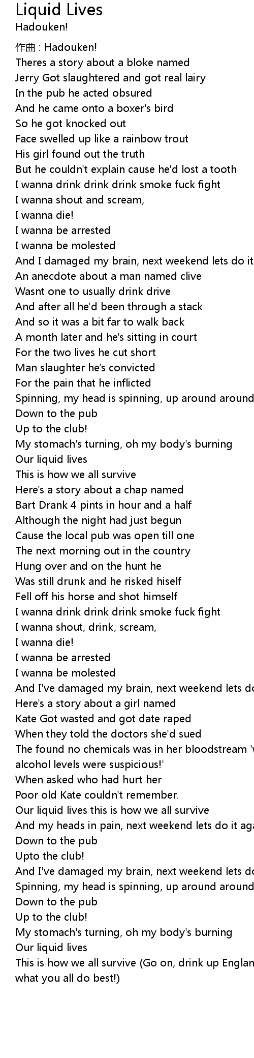 | This is how we all survive Go on, drink up England! Come on, swig it up. It' s what you all do best! |