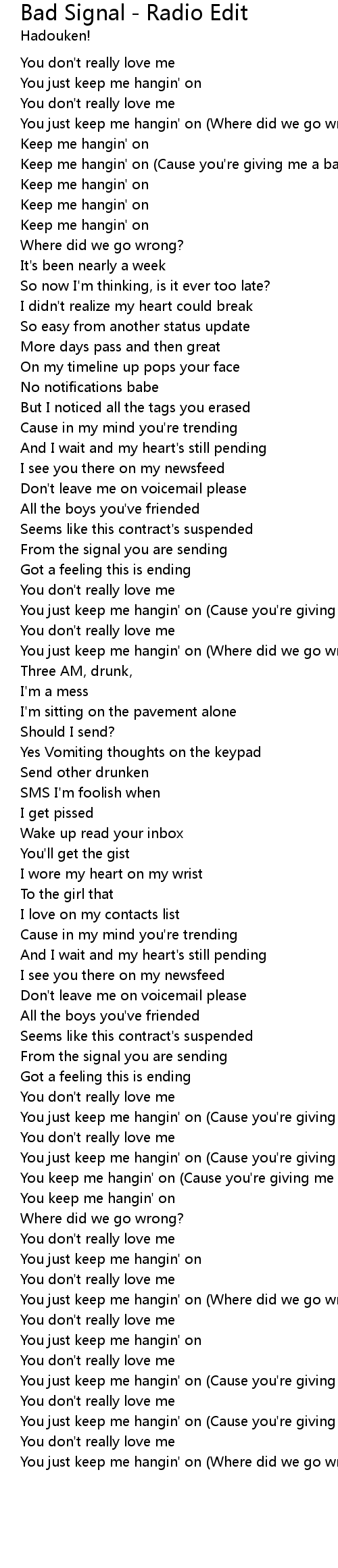 Keep me hangin' on (Cause you're giving me a bad signal)