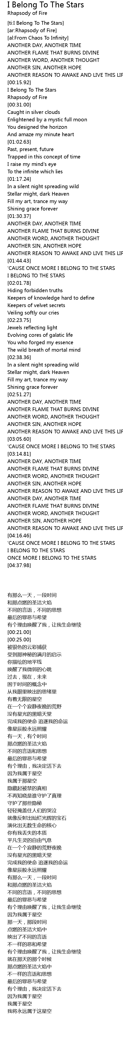 'CAUSE ONCE MORE I BELONG TO THE STARS |