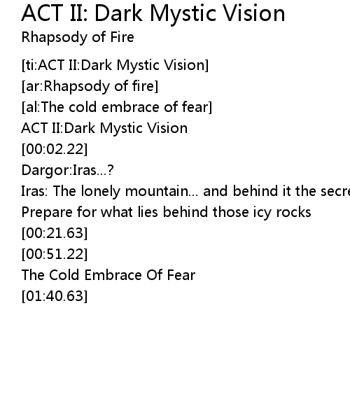 | [ti:ACT II:Dark Mystic Vision] | |