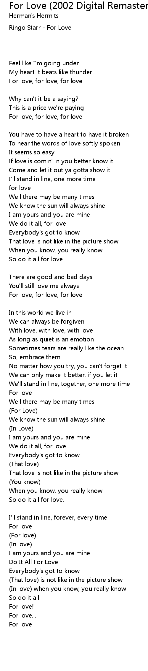 For Love (2002 Digital Remaster) Lyrics