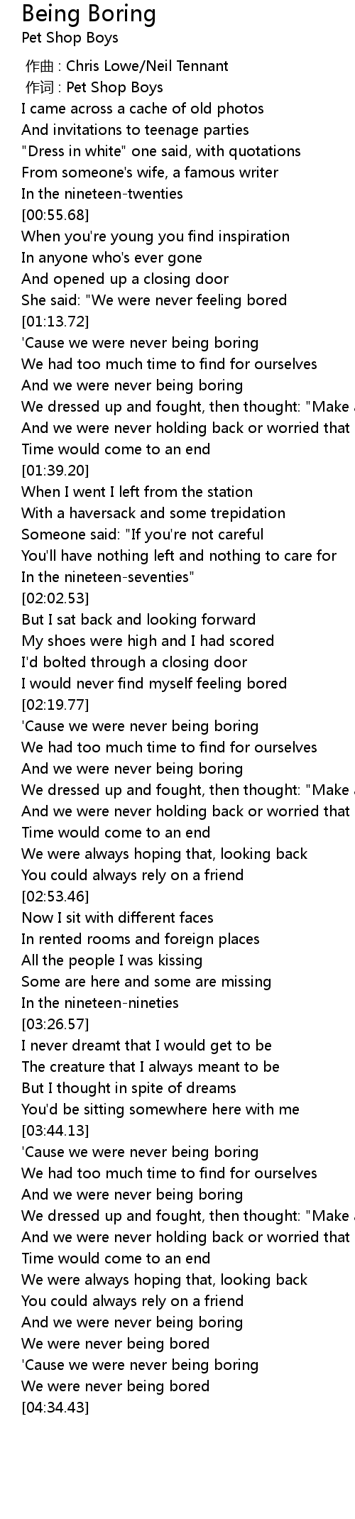 | [00:01.00] | 作词 : Pet Shop Boys |