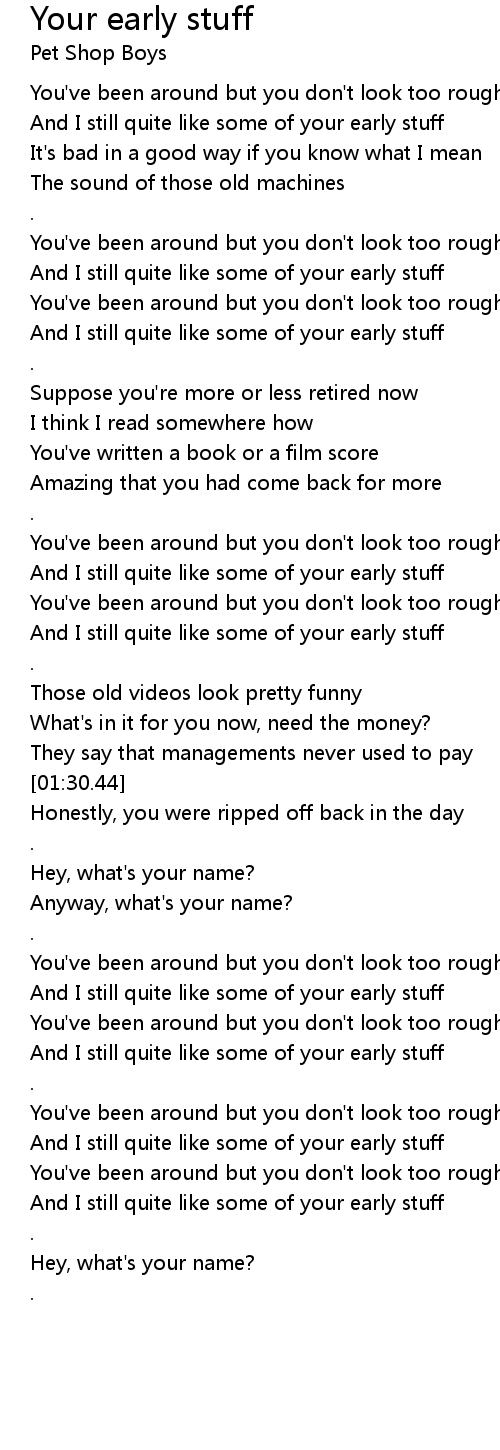 And I still quite like some of your early stuff |