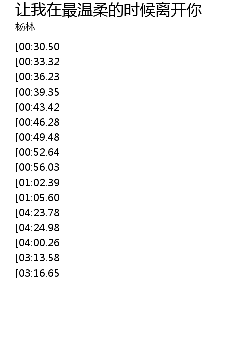 | [04:38.58][04:24.98][04:08.65][03:55.69][03:09.17][02:55.99][01:28.02][01:14.96] | shí hòu lí kāi nǐ |