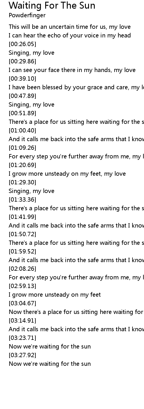 Now there's a place for us sitting here waiting for the sun |