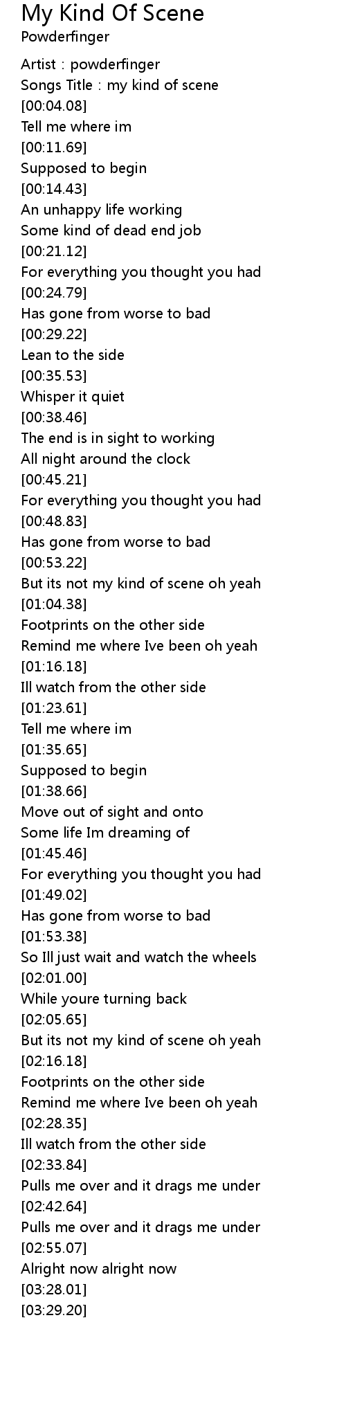 | [00:02.14] | Songs Title:my kind of scene |