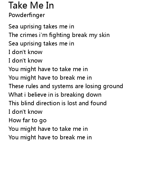 | Song | Take Me In |