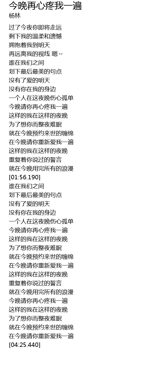 | [03:56.810] | 今晚请你再心疼我一遍 |