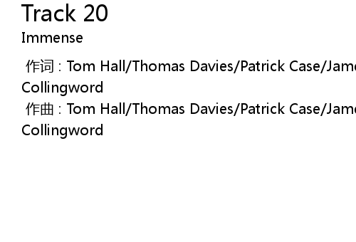 | [00:00.000] | 作曲 : Tom Hall/Thomas Davies/Patrick Case/James Dart/Dave Collingword |