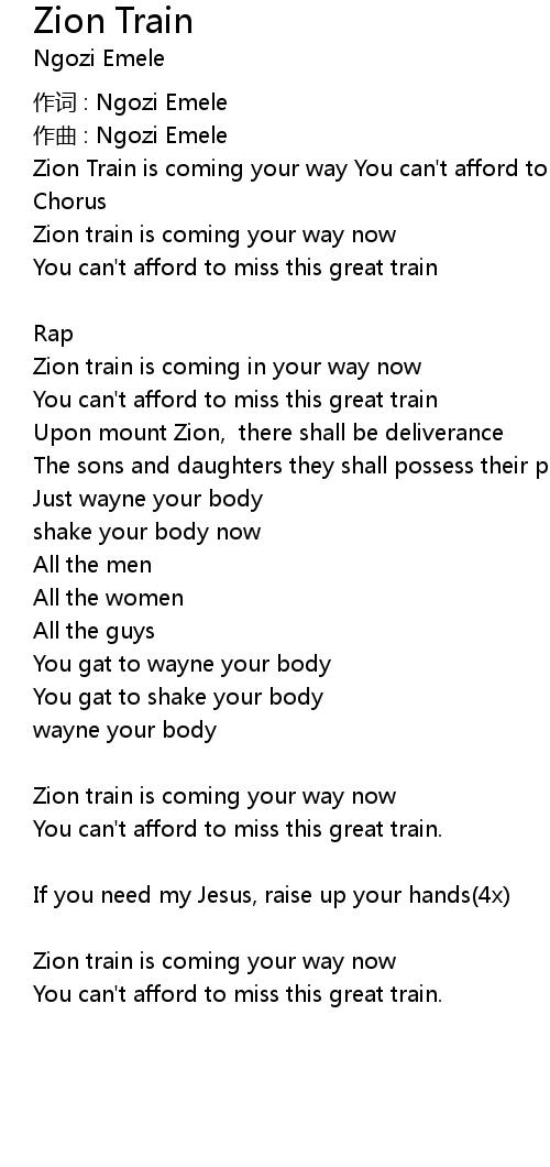 | Zion train is coming in your way now | |
