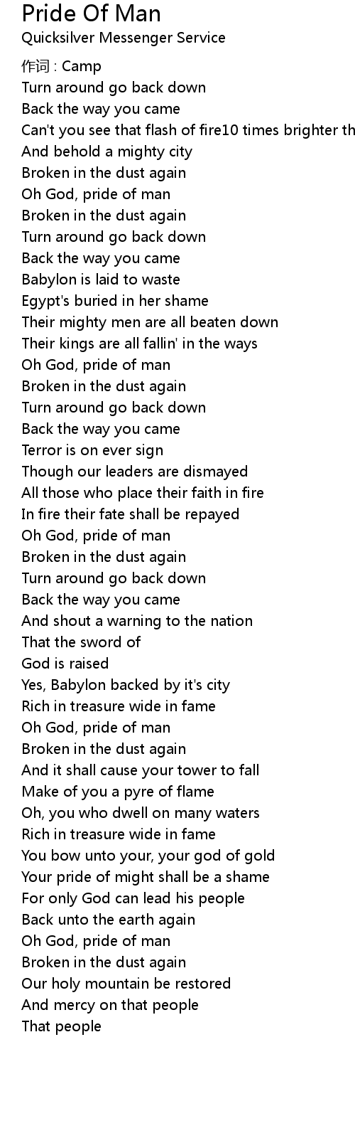 | Song | Pride Of Man |