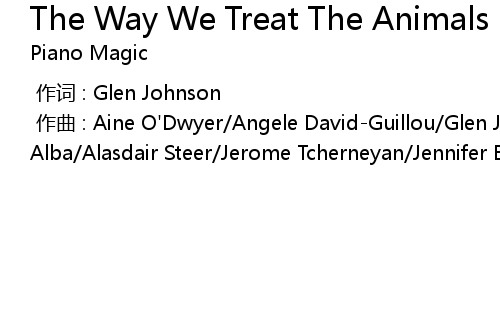 | [00:00.000] | zuò qǔ : Aine O' Dwyer Angele DavidGuillou Glen Johnson Franck Alba Alasdair Steer Jerome Tcherneyan Jennifer Barron |