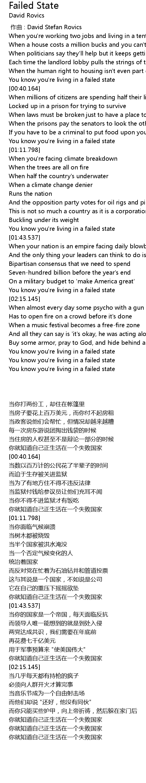 | [02:43.801] | You know you' re living in a failed state |