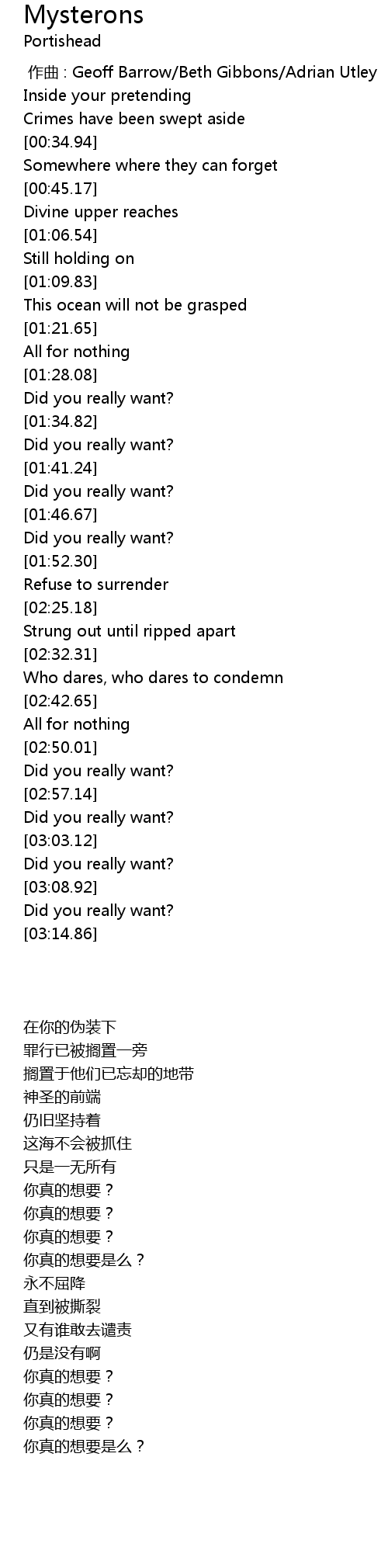 | [02:59.88] | Did you really want? |
