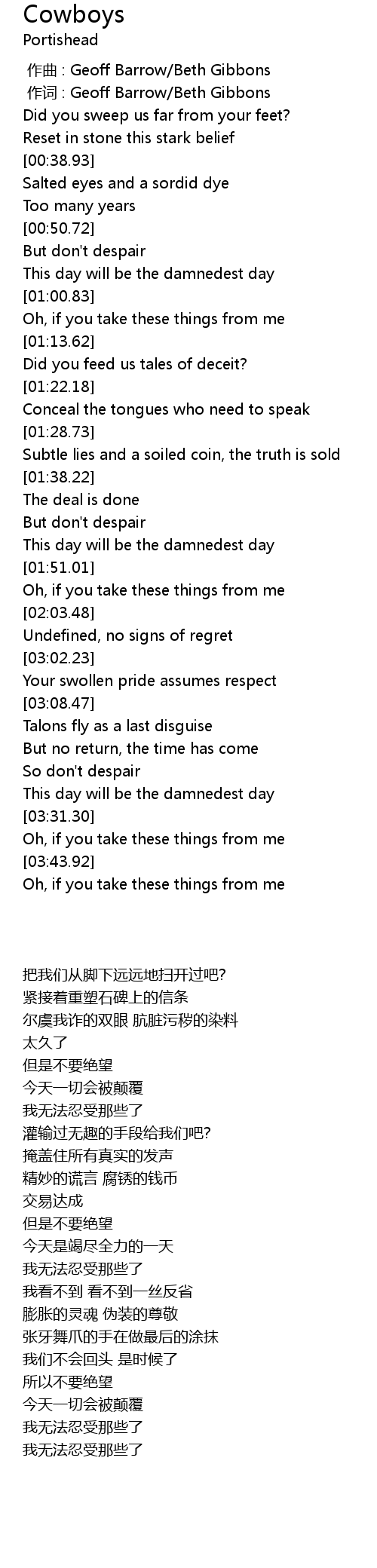 | [00:01.00] | zuò cí : Geoff Barrow Beth Gibbons |