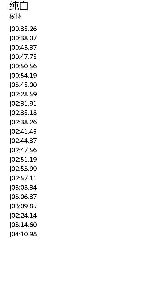 | [03:53.91][02:35.18][01:09.63] | shi yi pian chun bai |