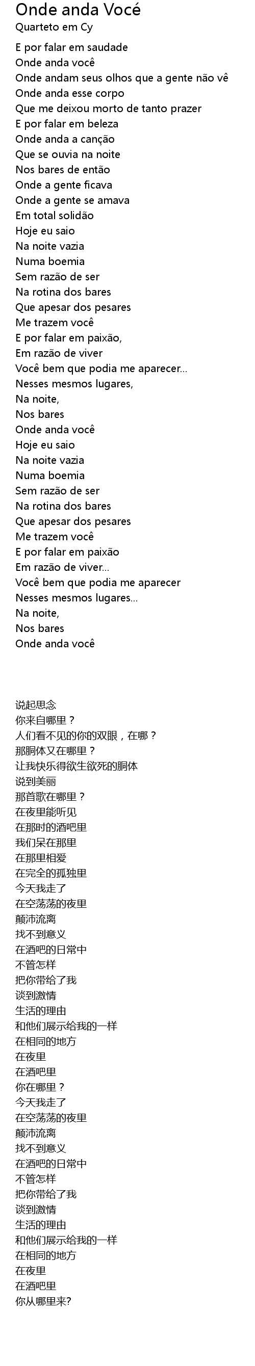 | [00:24.363] | Onde anda você |