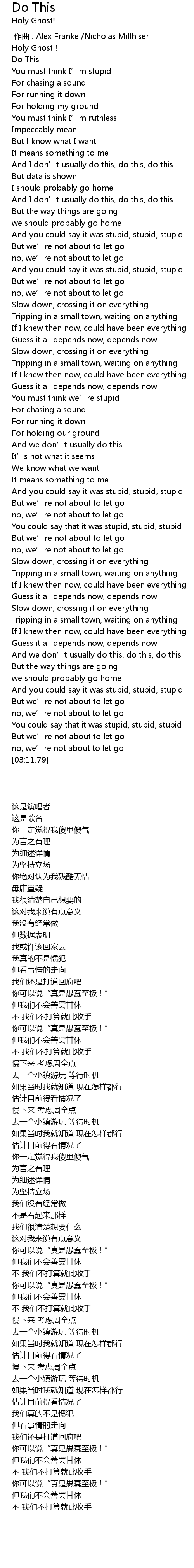 | [00:09.71] | Holy Ghost! |