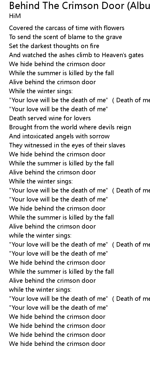 | [03:49.32] | "Your love will be the death of me" (Death of me) |