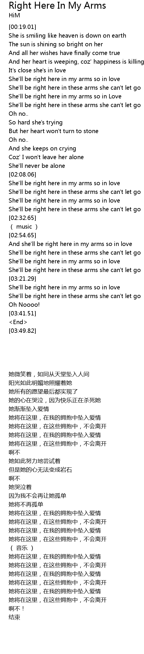 | [02:20.33] | She' ll be right here in my arms so in love |