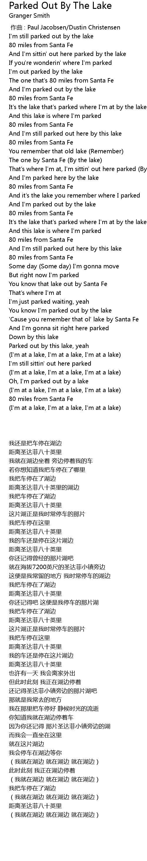 | [00:49.791] | It' s the lake that' s parked where I' m at by the lake |