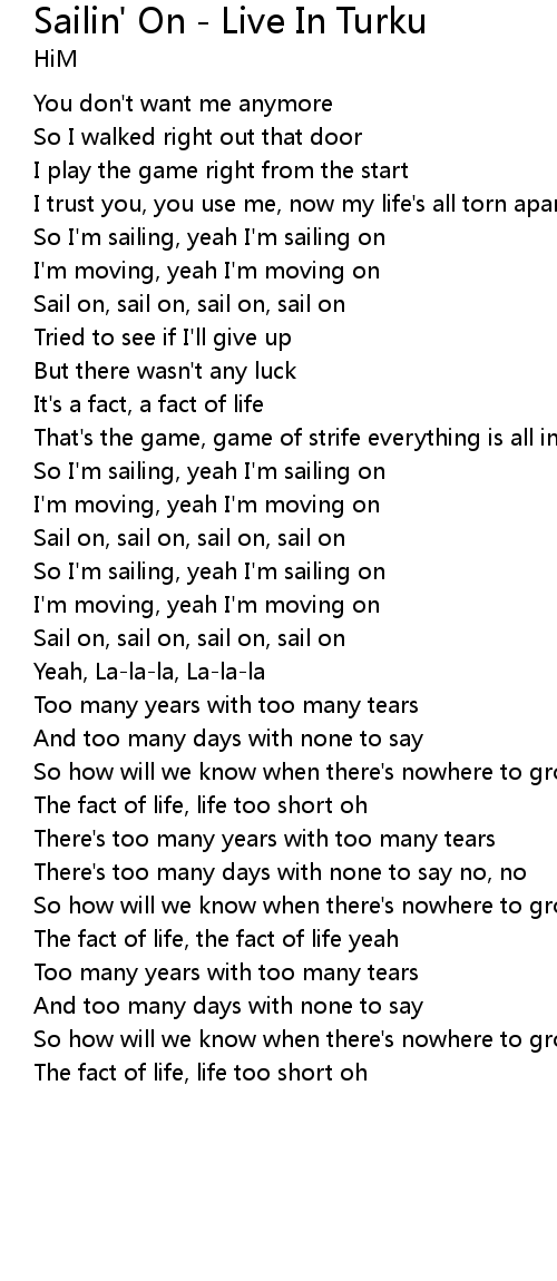 Sail on, sail on, sail on, sail on |