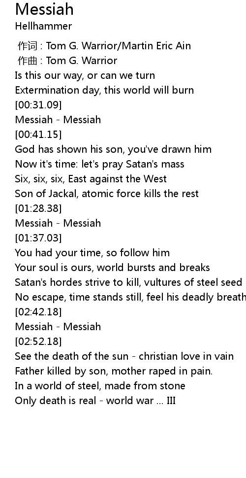 | [00:00.000] | 作词 : Tom G. Warrior/Martin Eric Ain |
