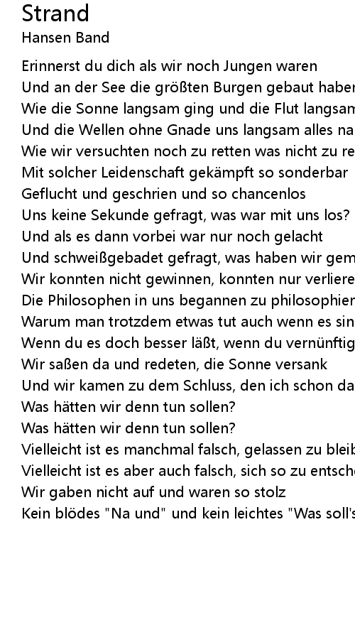 | Und die Wellen ohne Gnade uns langsam alles nahmen | |
