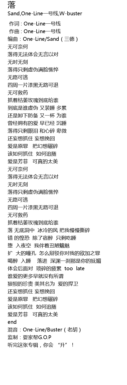 | [00:01.410] | 编曲:One-Line/Sand(三德) |