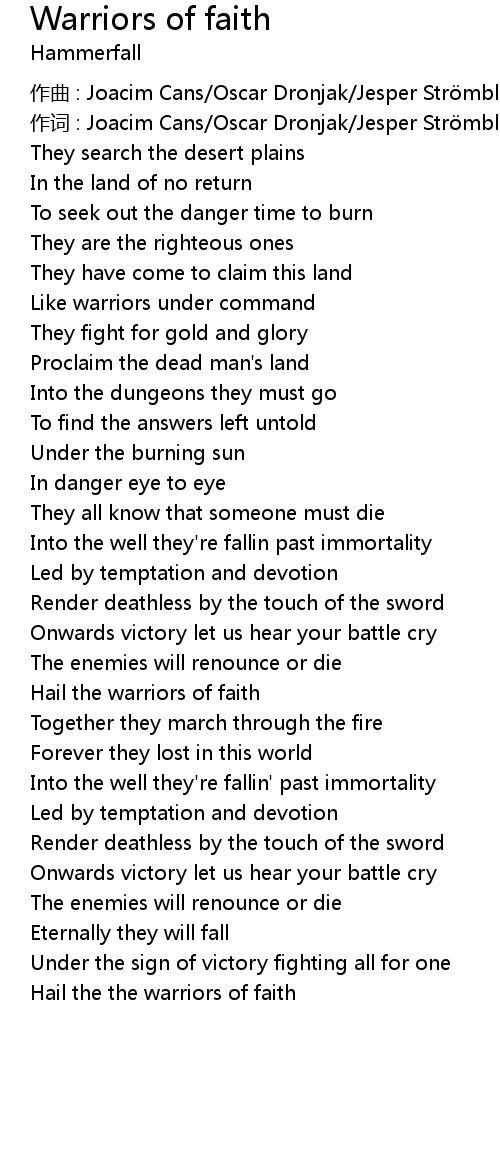 | Hail the the warriors of faith |