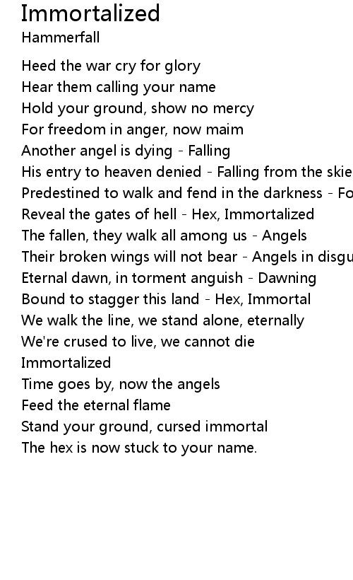 Bound to stagger this land - Hex, Immortal |