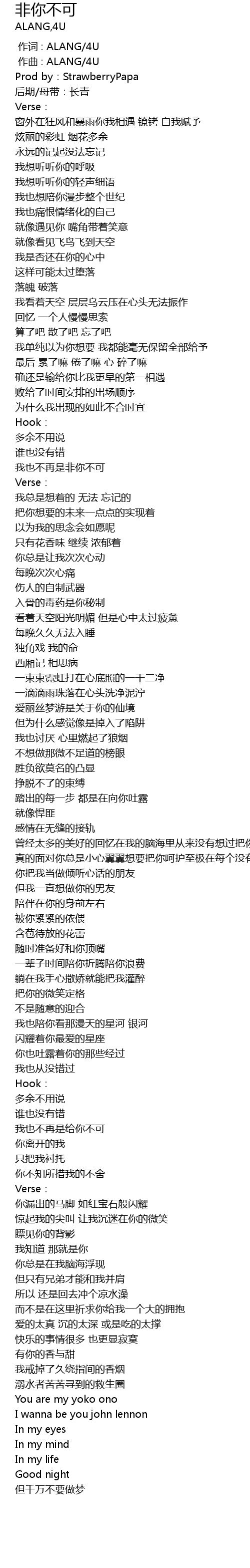 | [00:59.684] | wǒ yě bù zài shì fēi nǐ bù kě |