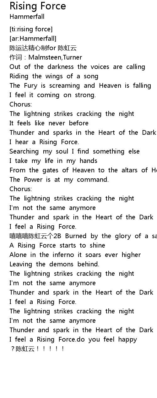 | [04:03.648] | I feel a Rising Force.do you feel happy ?陈虹云!!!!! |