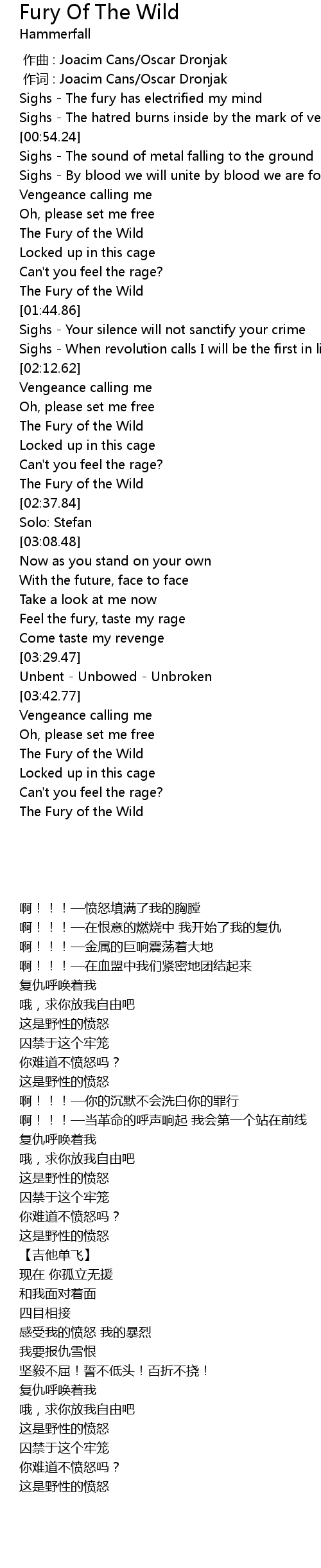 | [00:32.30] | Sighs - The fury has electrified my mind |
