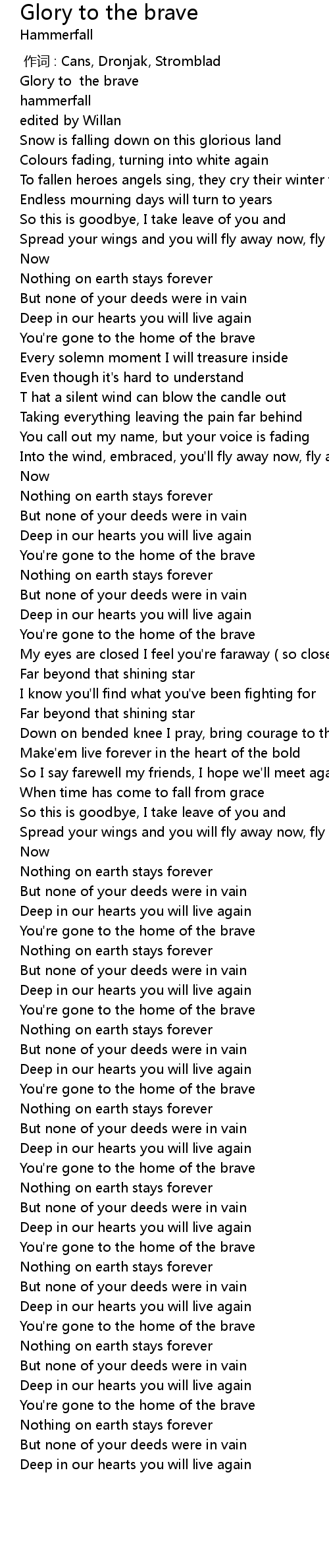 | [04:24.36] | Make'em live forever in the heart of the bold |