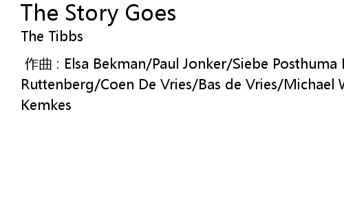 | [00:00.000] | 作曲 : Elsa Bekman/Paul Jonker/Siebe Posthuma De Boer/Berd Ruttenberg/Coen De Vries/Bas de Vries/Michael Willemsen/Paul Willemsen/Henk Kemkes |