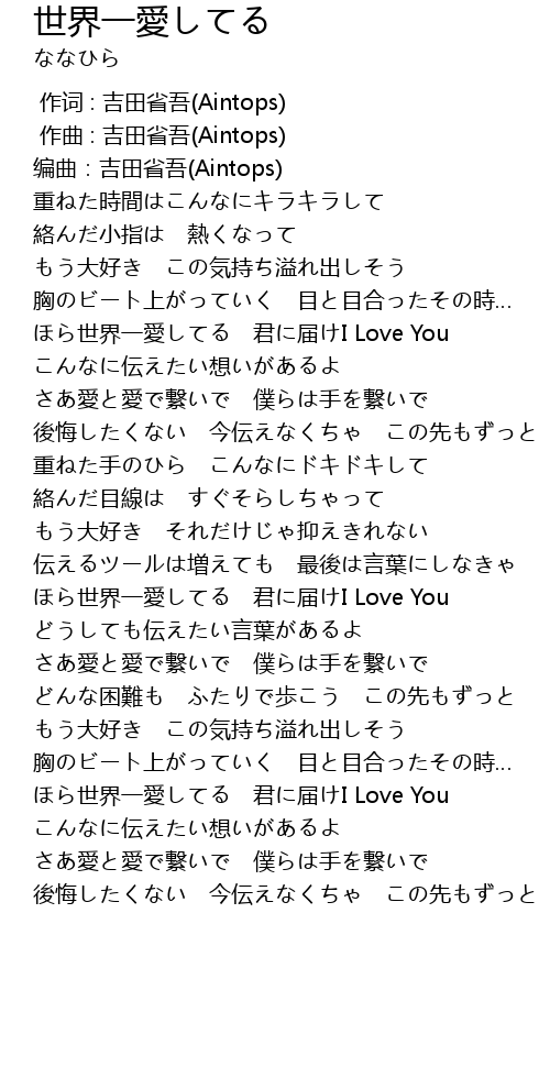 | [00:40.47] | ほら世界一愛してる 君に届けI Love You |