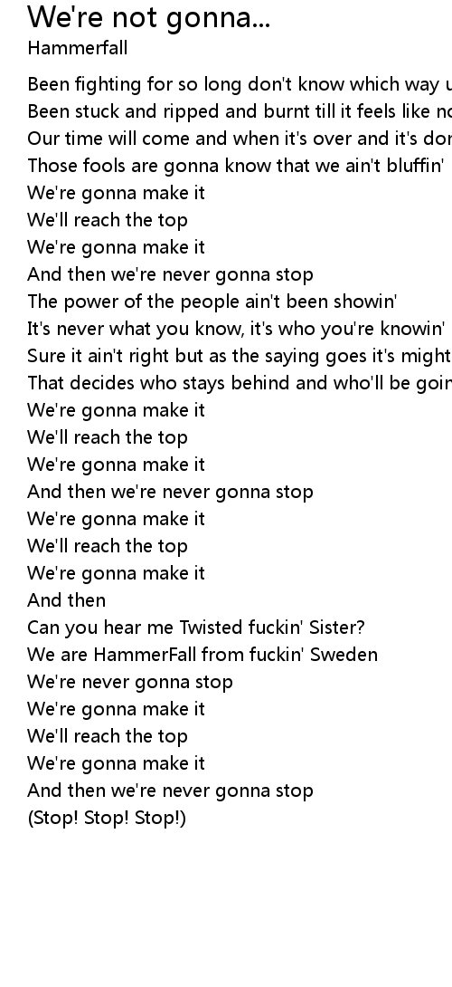 We're not gonna... Lyrics