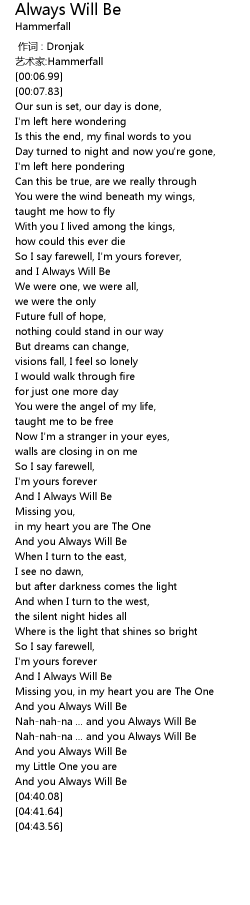 | [03:54.39] | And you Always Will Be |
