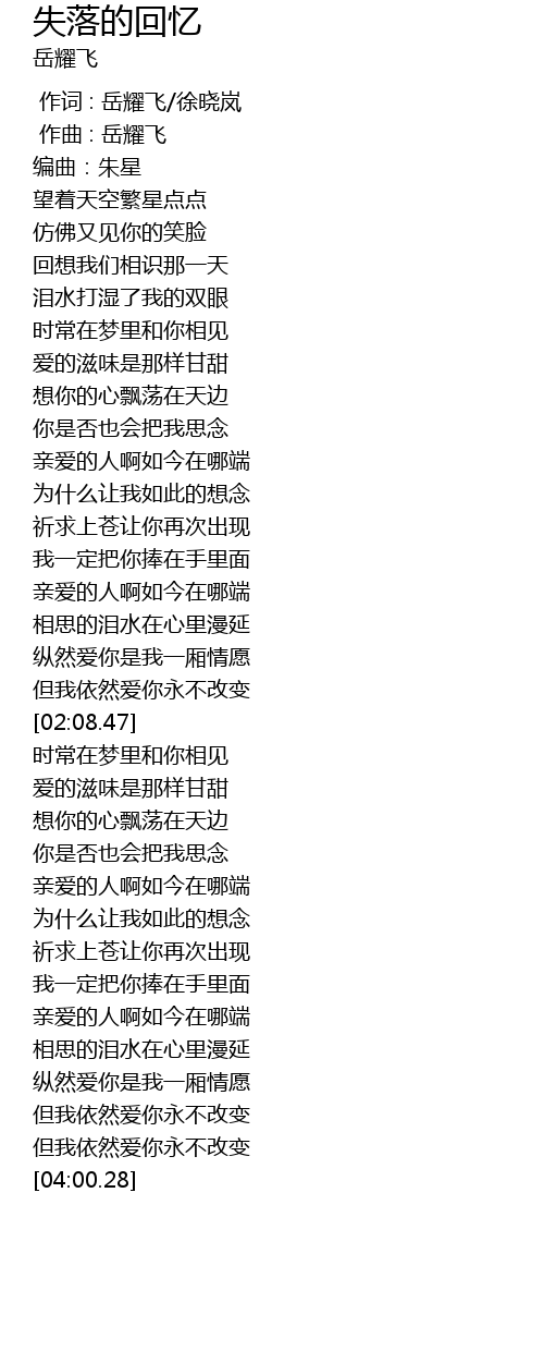 | [00:01.000] | 作曲 : 岳耀飞 |